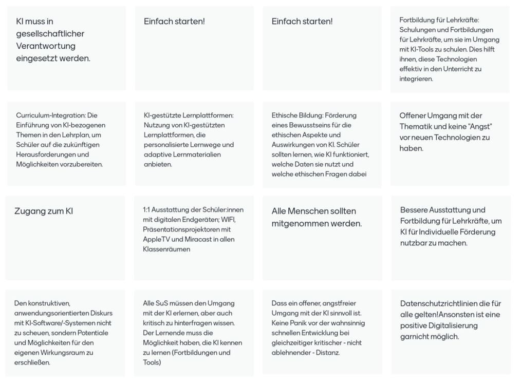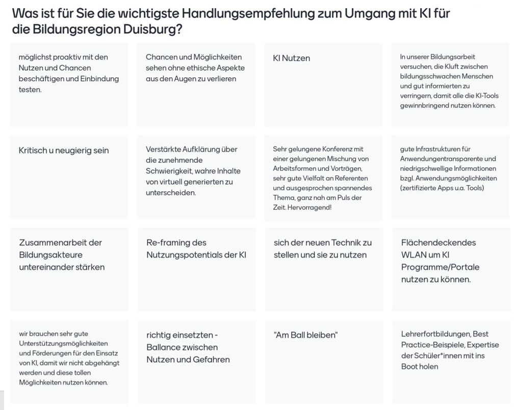 Über Mentimeter konnten die Teilnehmenden im Nachgang zur Konferenz ein Feedback zur Veranstaltung geben. Hier waren vor allem die aus ihrer Sicht wichtigsten Handlungsempfehlungen für die Bildungsregion gefragt.