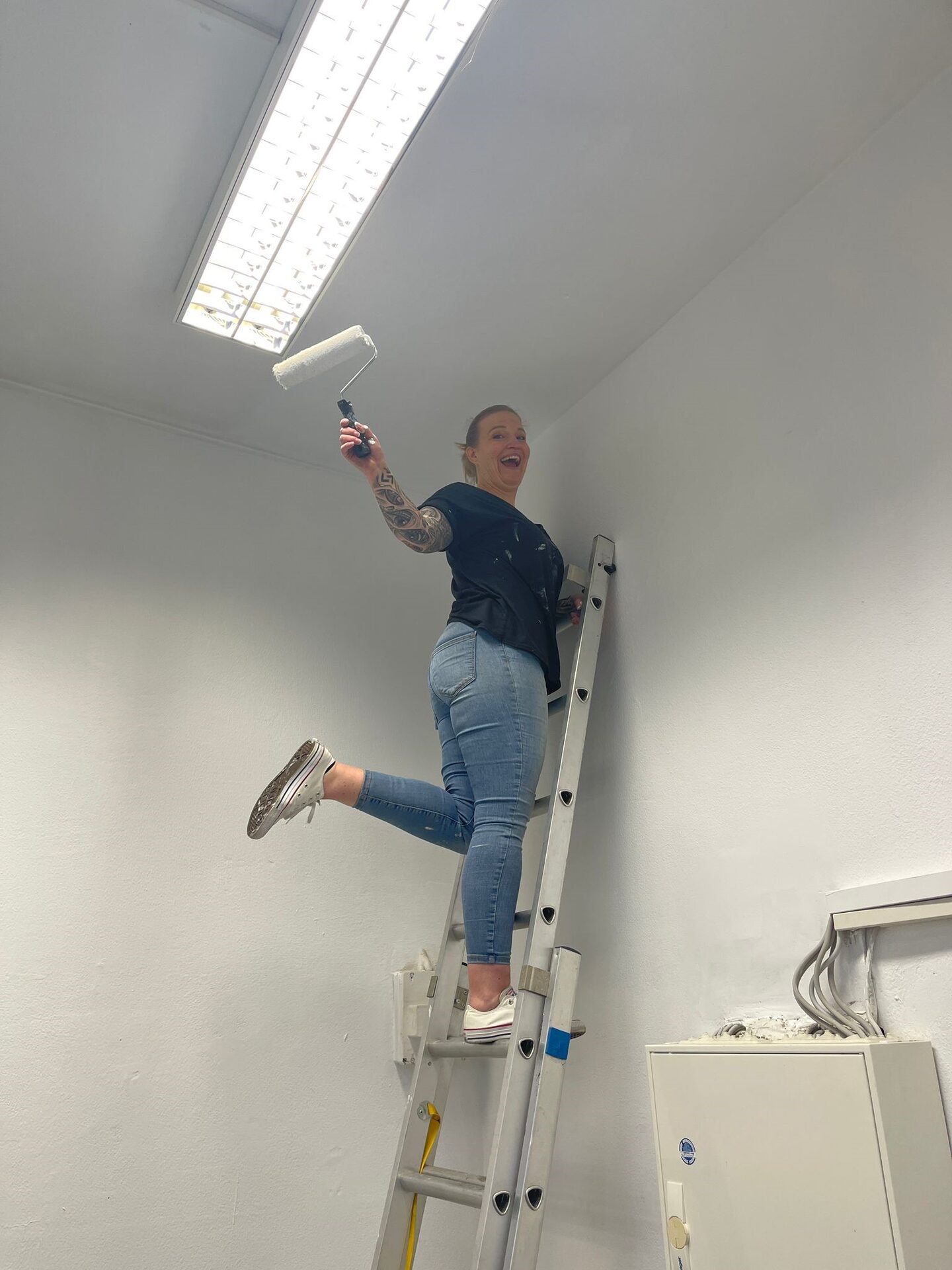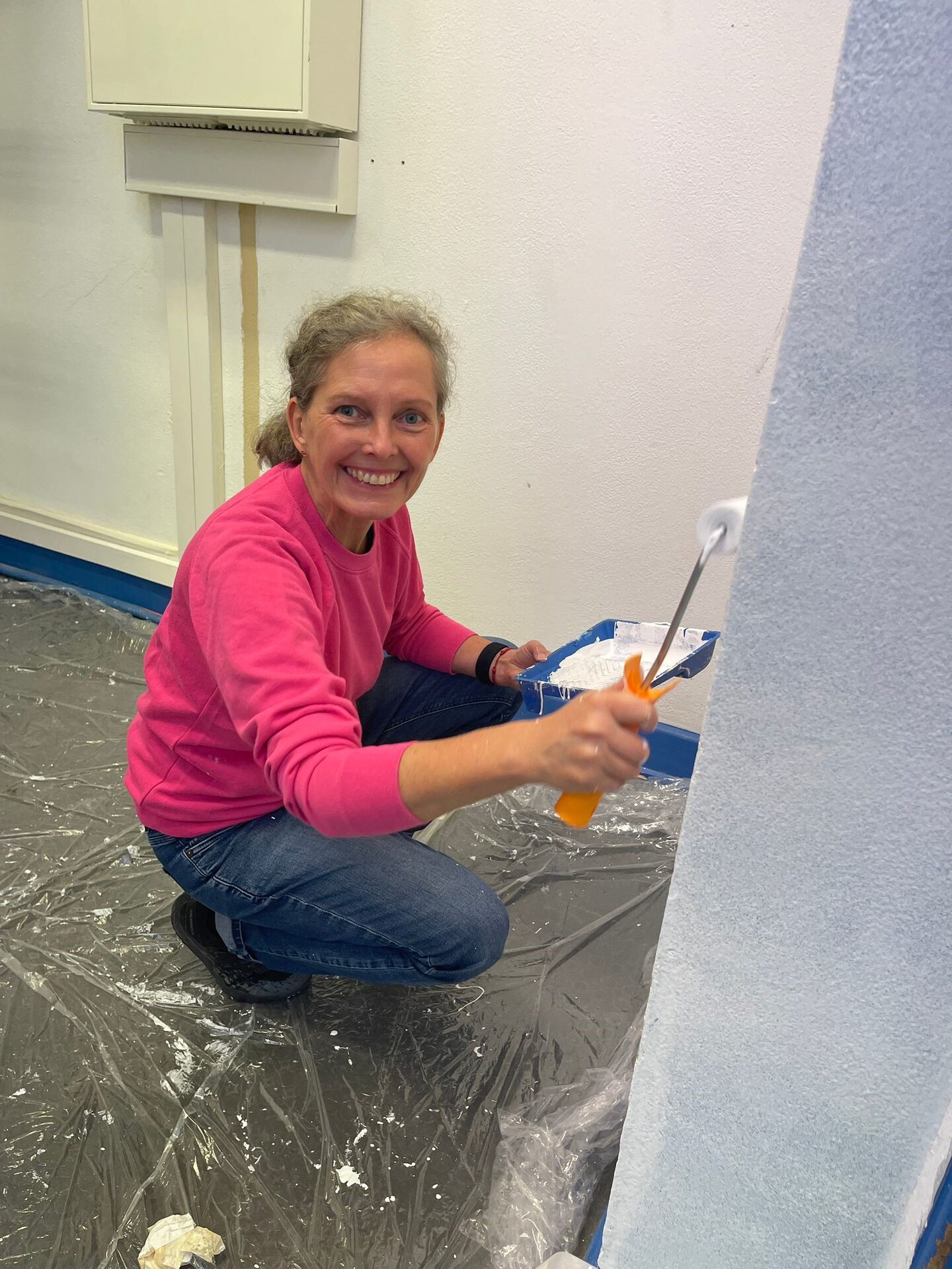 Am Tag des Social Days griffen die Helferinnen und Helfer schließlich zu Farbeimer und Pinsel. Der Computerraum und der große Flur im ersten Obergeschoss erhielten einen frischen, weißen Anstrich. Mit viel Engagement und Teamarbeit verwandelten die Beteiligten den Bereich sichtbar und sorgten für ein helleres, freundlicheres Erscheinungsbild.