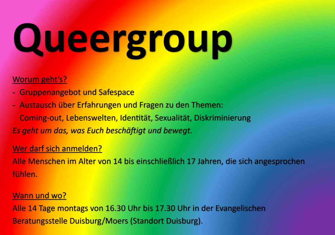 Hier findet Ihr/Sie alle möglichen Kontaktdaten zu Gruppen, Vereine, etc. die für das Leben der "Vielfältigen Lebensformen" in Duisburg stehen.