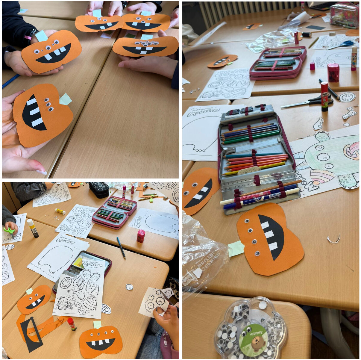 Dieses Mal entstanden selbst gestaltete Monster und herbstliche Kürbisse aus Pappe, jedes Stück ein echtes Unikat. 👾🎃