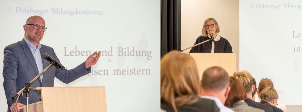 Zum Auftakt der Veranstaltung begrüßten zunächst Oberbürgermeister Sören Link, und anschließend Angelika Hermans, Leiterin des Kaufmännischen Berufskollegs Duisburg-Mitte, die Teilnehmenden der Duisburger Bildungskonferenz.