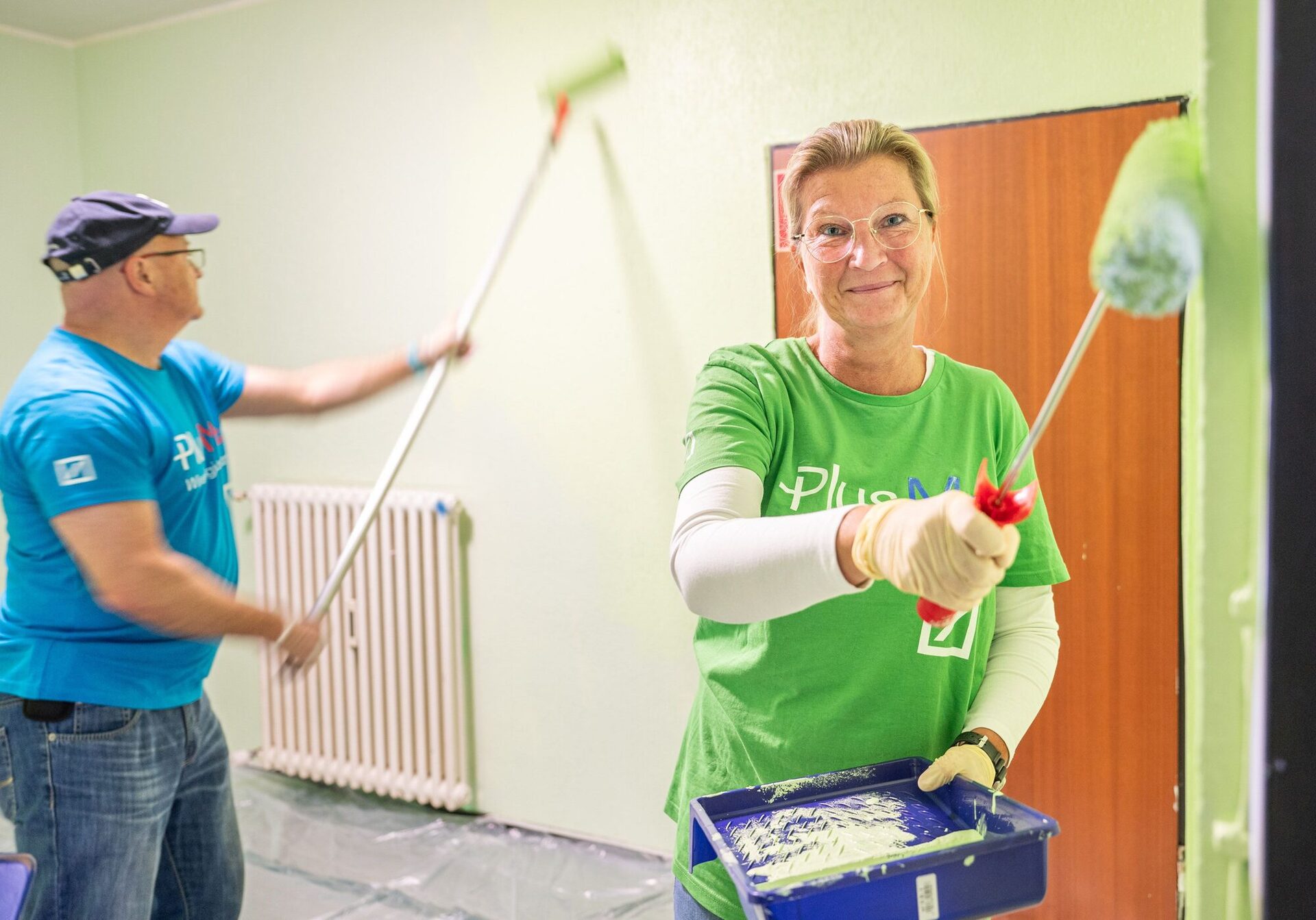 Die Freiwilligen griffen zu Klebeband, Farbeimer und Farbroller. Es wurde abgeklebt, gemalt und gestrichen. Außerdem unterstützt die Deutsche Bank das Jugendzentrum mit einer Finanzspritze in Höhe von 800 Euro.
