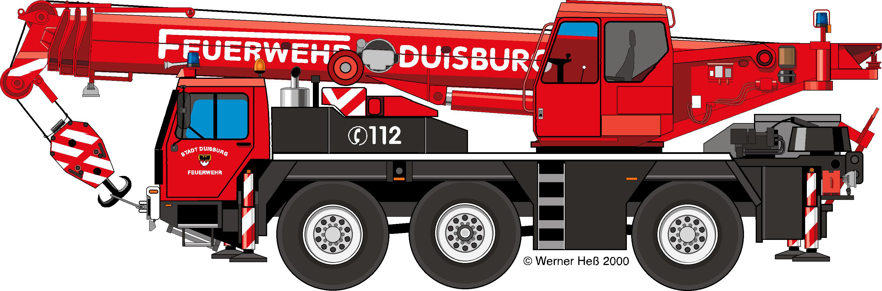 Bei dem Duisburger Kran handelt es sich um einen 40 t Kran, der mit umfangreicher Ausstattung speziell für Feuerwehreinsätze ausgerüstet ist.