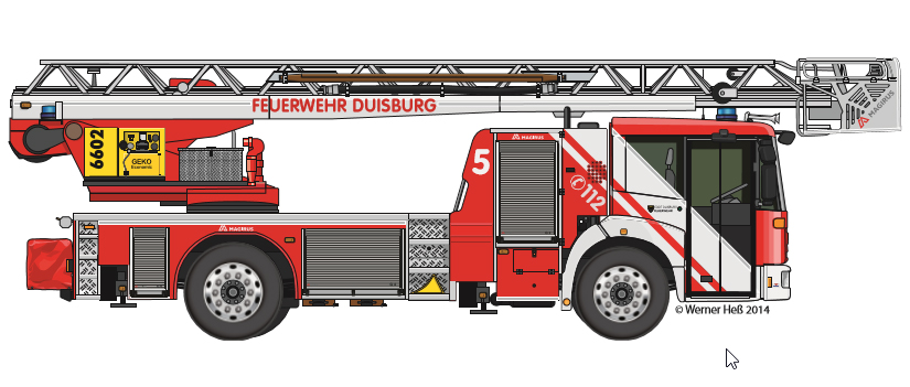 Hubrettungsfahrzeuge nach DIN-Norm sind in Duisburg nur als Drehleitern (DLK) vorzufinden.