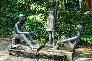 Kinder im Gespräch wurde 1967 von der Walsumer Künstlerin Hildegard Bienen geschaffen.