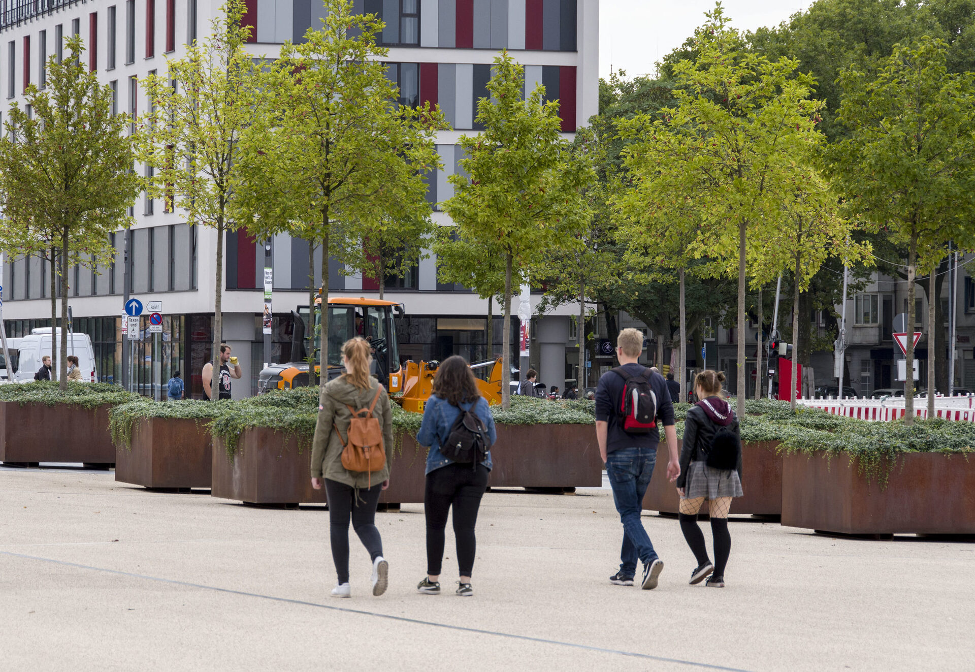 Auch Orte der Erinnerung und der Besinnung sind in einem angemessenen Rahmen feinfühlig in den Bahnhofsplatz und das städtische Umfeld eingebunden. So findet ein Symbol des Gedenkens ihren Platz in der Mitte der Stadt: gemeinsam mit Vertretern der Angehörigen der Opfer der Love-Parade wurden Standort und Anordnung der Magnolien auf dem Platz festgelegt.