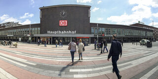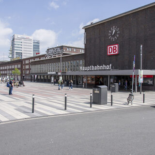 Ein prominenter, städtischer Bereich wie der Bahnhofsplatz weist eine typische Identität auf, die jeden Besucher in der Stadt willkommen heißen soll.