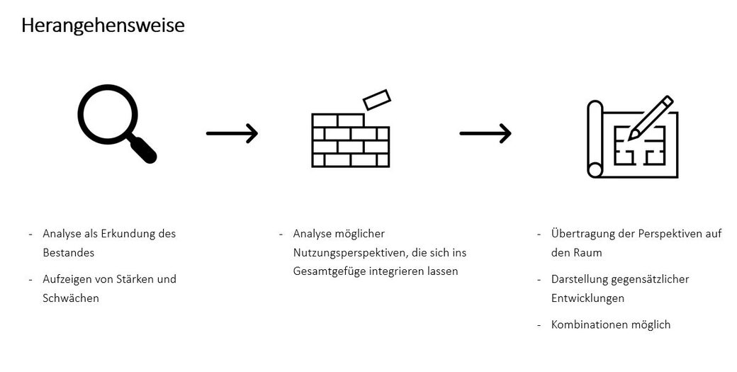 Nähere Informationen zu den Zielen (S. 49-45), zukünftigen Nutzungen (S.55ff.) und konkreten Maßnahmenvorschlägen (S.58-41) sind dem Endbericht zu entnehmen.