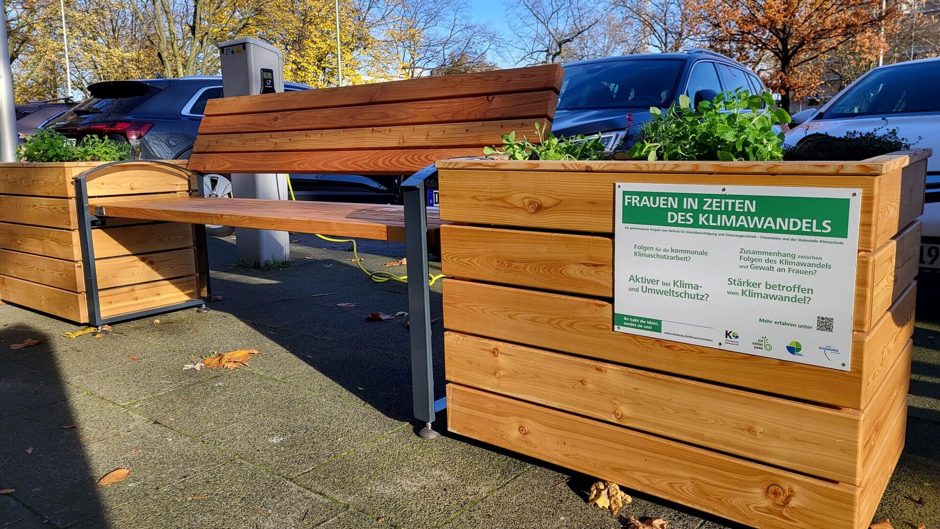 In Kooperation mit der Stabsstelle Klimaschutz plant das Frauenbüro vor dem Duisburger Rathaus die Aktion "Die Grüne Bank wird echt Orange".