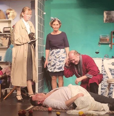 Aber was ist, wenn der Theaterchef plötzlich tot auf der Bühne liegt?