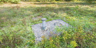 Schachtdeckel des ehemaligen Bergwerkschachts der Zeche Wilhelmine Mevissen in der Grünanlage zwischen Rathausallee und Nedleburg.
