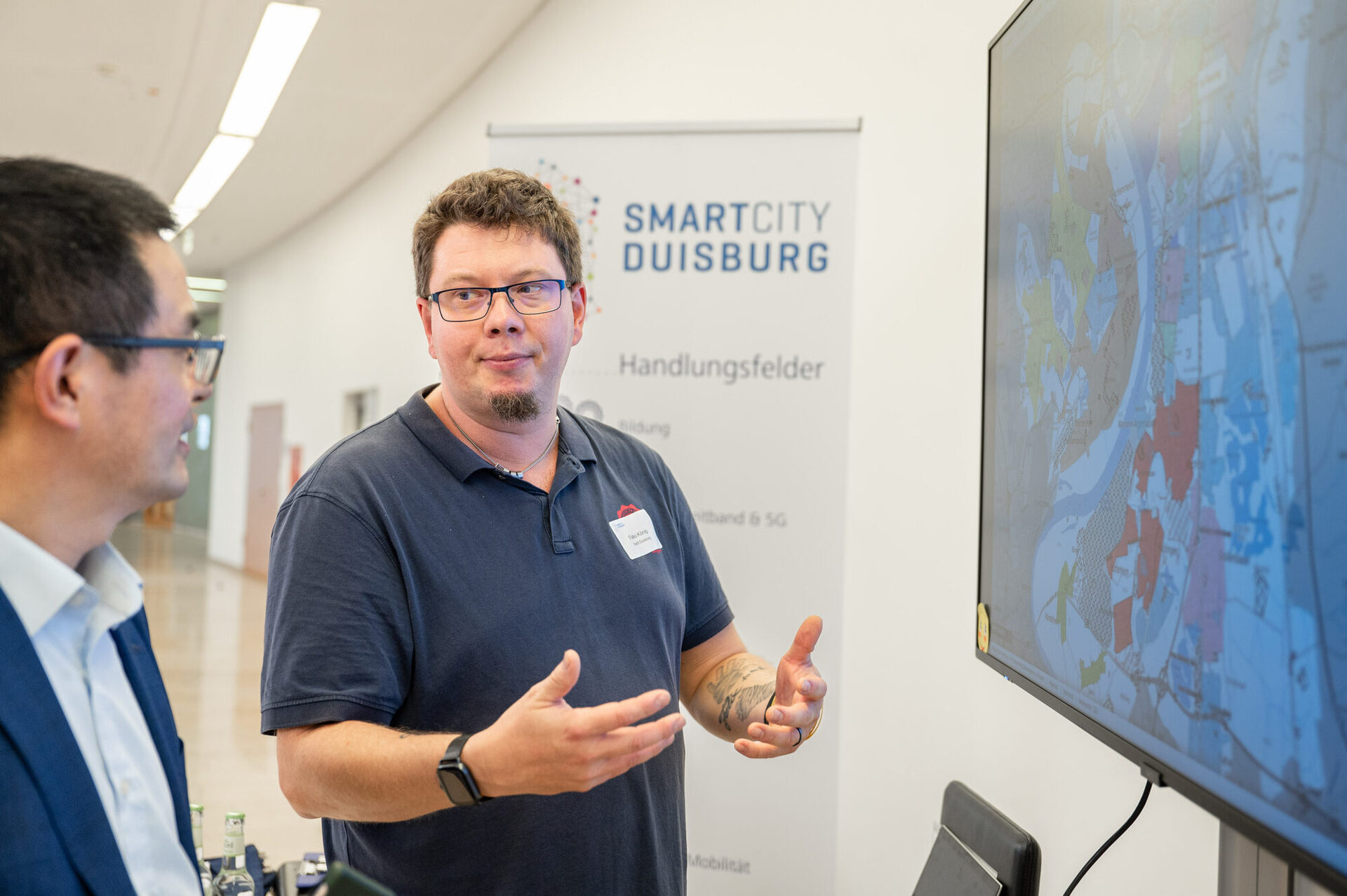 Vorgestellt wurden auch erste Ansätze zur Entwicklung des Masterplans 2.0, bei dem anders als bei seinem Vorgänger nicht die Digitalisierung, sondern der Mensch im Mittelpunkt stehen wird. Dabei spielen Themen wie Partizipation, Bürgerbeteiligung und Nachhaltigkeit eine wichtige Rolle. Der unreflektierte Umgang mit Technologie wird zunehmend kritisch hinterfragt, gleichzeitig rücken Zielsetzungen wie die resiliente Stadt, Versorgungssicherheit und regionale Autarkie in den Fokus. In gemeinsamen Workshops können Duisburgerinnen und Duisburger an der Gestaltung dieser Zukunftsvision mitarbeiten. Weitere Details dazu finden sich in Kürze im Internet unter www.duisburgsmartcity.de
