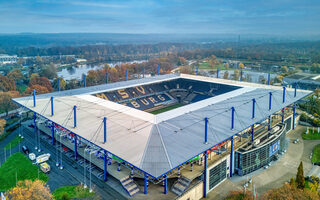Nach dem Umbau zwischen 2003 und 2005 im laufenden Spielbetrieb, finden etwa 31.500 Personen auf den komplett überdachten Tribünen Platz.