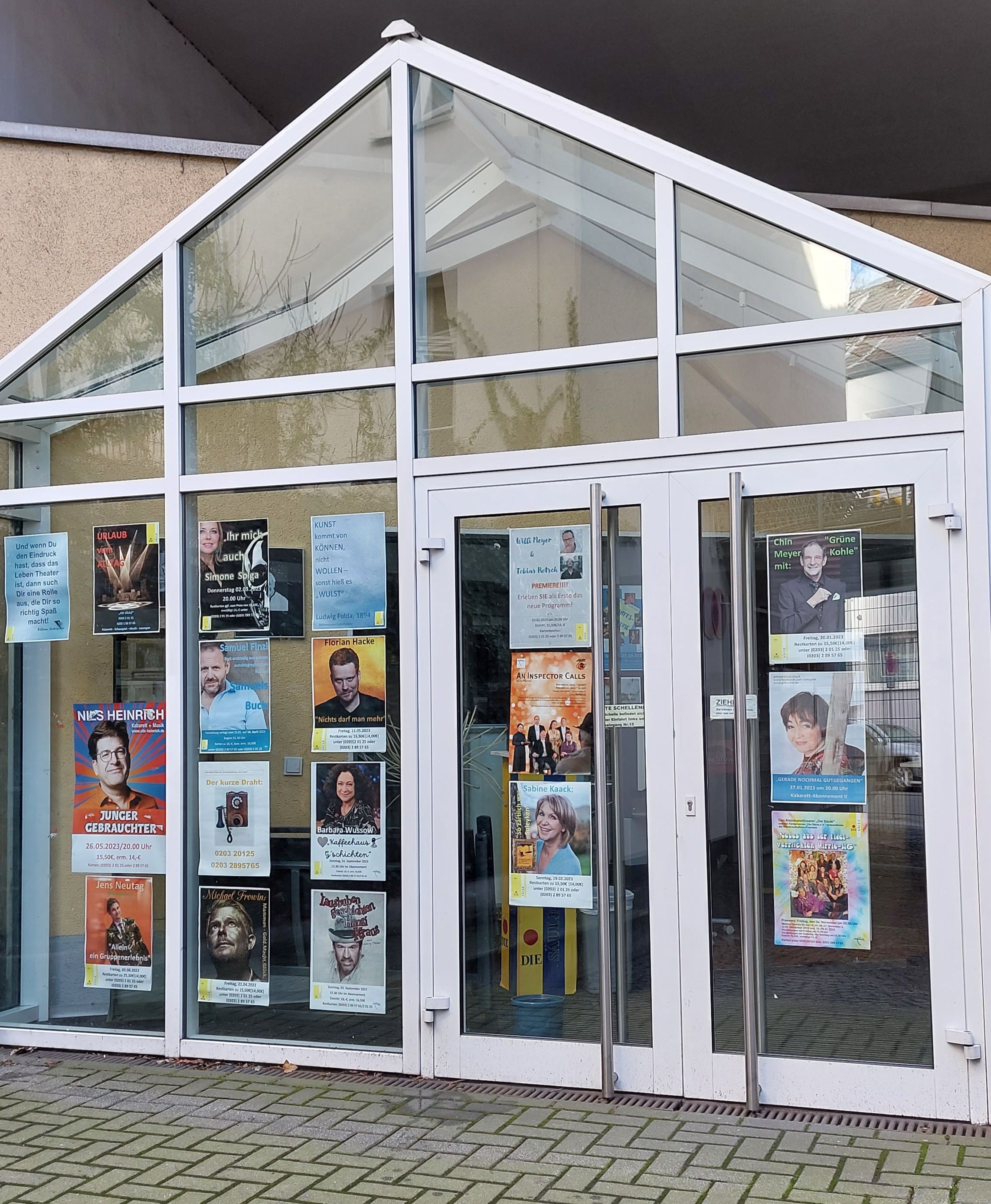 Ein abwechslungsreiches Programm aus Schauspiel, Komödie, Literatur, Kabarett und Musik bietet das beliebte Kleinkunsttheater mit Sitz am Dellplatz seinem Publikum. Bekannte Künstler aus Film, Fernsehen und Theater, Kleinkunstgruppen und freie Duisburger Theatergruppen zeigen hier ihre Produktionen.