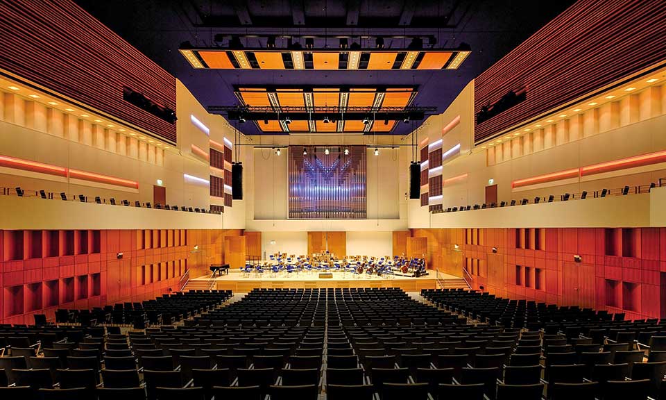 Die Philharmonie bietet dank variabler Bodenelemente, welche gestuft oder auch auf eine Ebene gefahren werden können, Platz für bis zu 2.000 Besucher. Als Heimspielstätte der Duisburger Philharmoniker wurde der Saal auf höchste Ansprüche an die Klangakustik ausgerichtet und bringt auf besondere Weise Qualität, Klasse und Funktionalität in Einklang. Verstellbare Akustikelemente machen jeden Auftritt zum Hörgenuss.