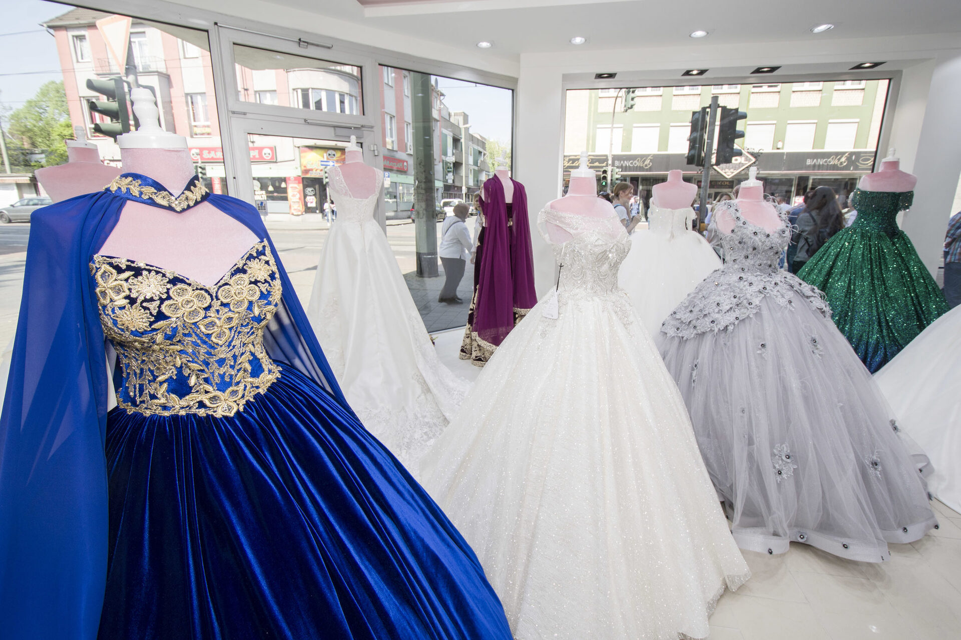 „Geheiratet wird immer. Und der Trend geht sogar dahin, die Feste immer pompöser und noch glamouröser werden zu lassen“, erklärt Nurcan Mert. „Die Leute kommen nach Marxloh, um bequem an einem Ort alles für die Hochzeit einkaufen und organisieren zu können. Vom Brautkleid über die Einladungskarten bis zur Aussteuer ist hier alles zu haben.“