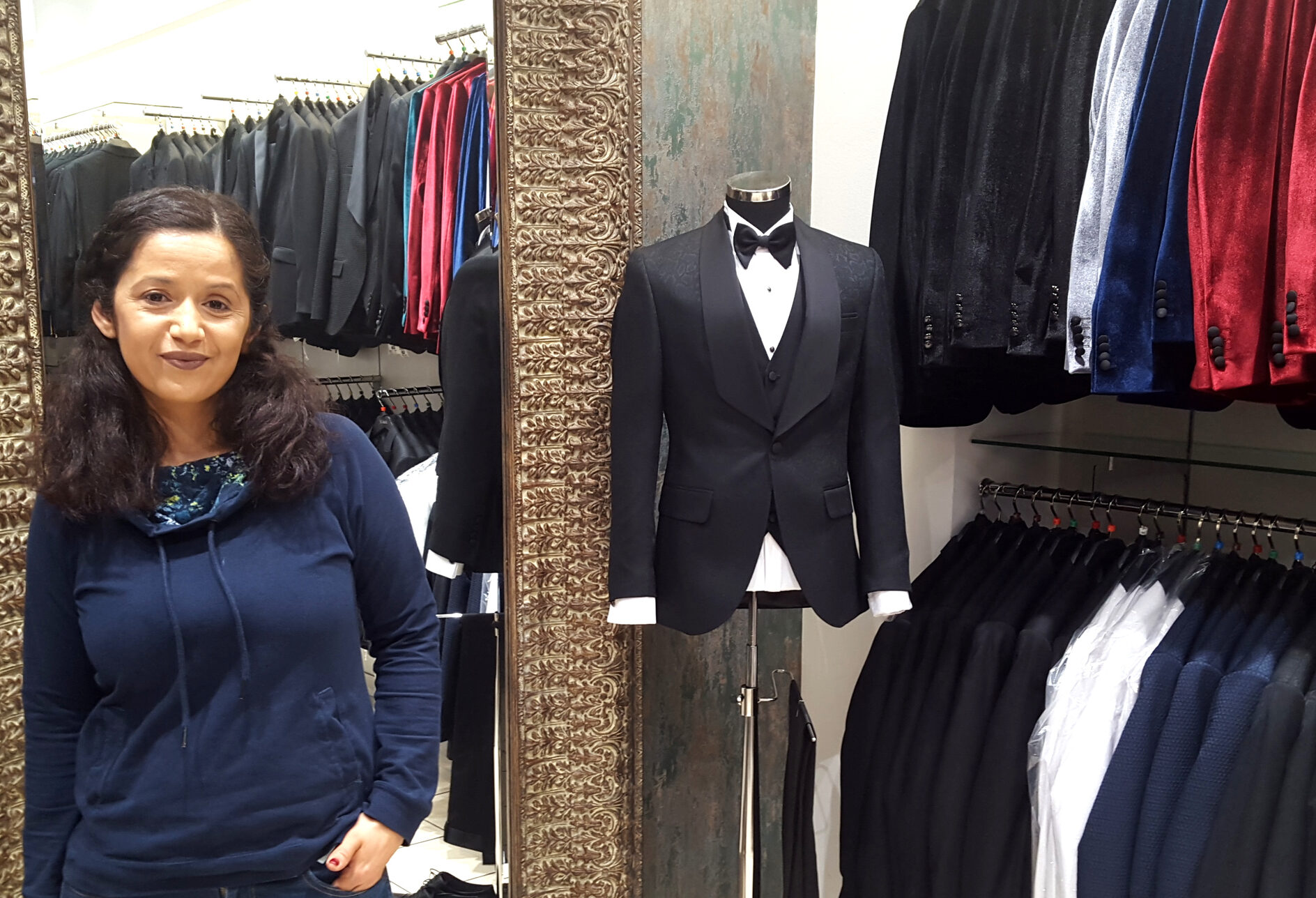 Aber es ist auch der Sachverstand der InhaberInnen und VerkäuferInnen, die den neusten Trends immer auf der Spur bleiben müssen. Die Sozialen Medien spielen dabei eine zentrale Rolle. Influencer auf Instagram setzen Maßstäbe. „Wir mussten auch erst lernen, dass nicht unser Geschmack alleine zählt, sondern es wichtig ist auf Kundenwünsche einzugehen“, sie weist auf die Glitzer-Sakkos, „so was ist durchaus beliebt.“ Es gilt stets die Waage zwischen Konservativem und Innovativem zu halten.